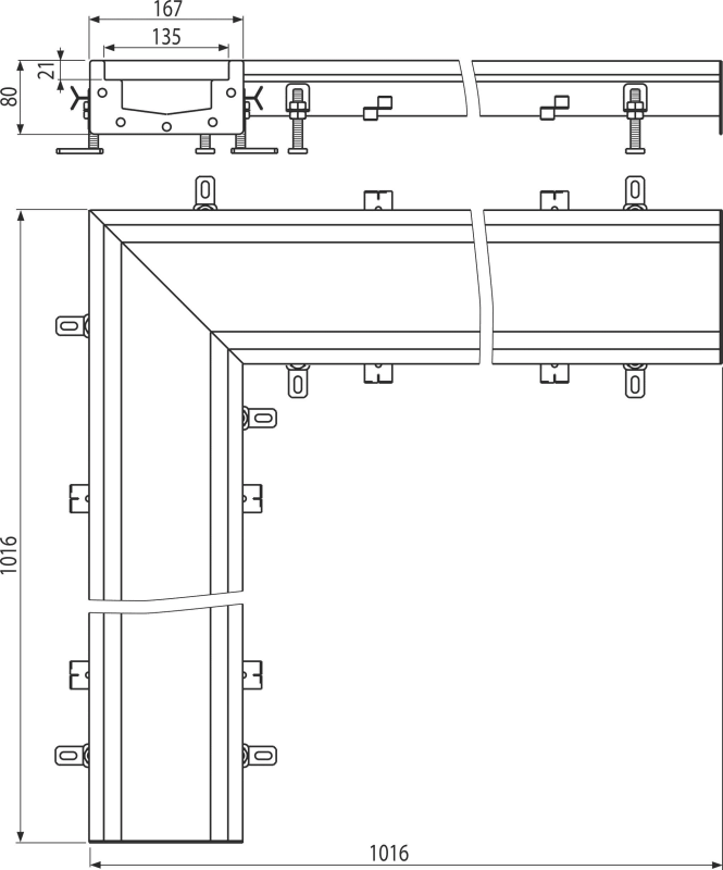- Вся система прочно закреплена в бетоне с помощью регулируемых ножек и боковых анкеров