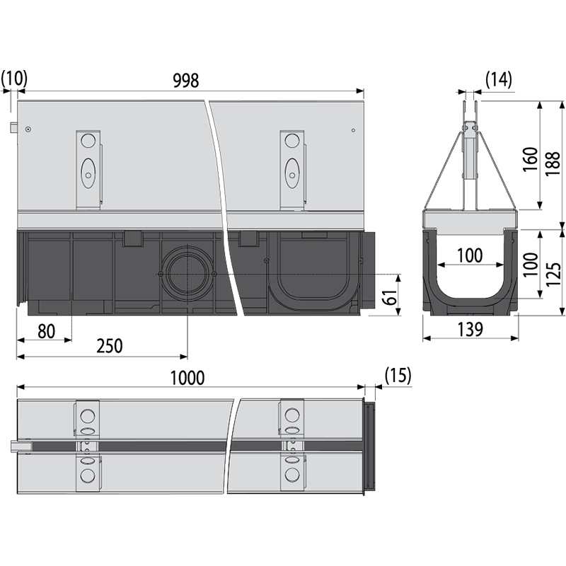 Щелевой дренажный канал с симметричной надставкой 160 мм, оцинкованная сталь