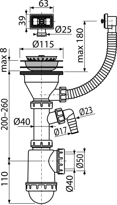 - Корпус сифона со штуцером и переливом
