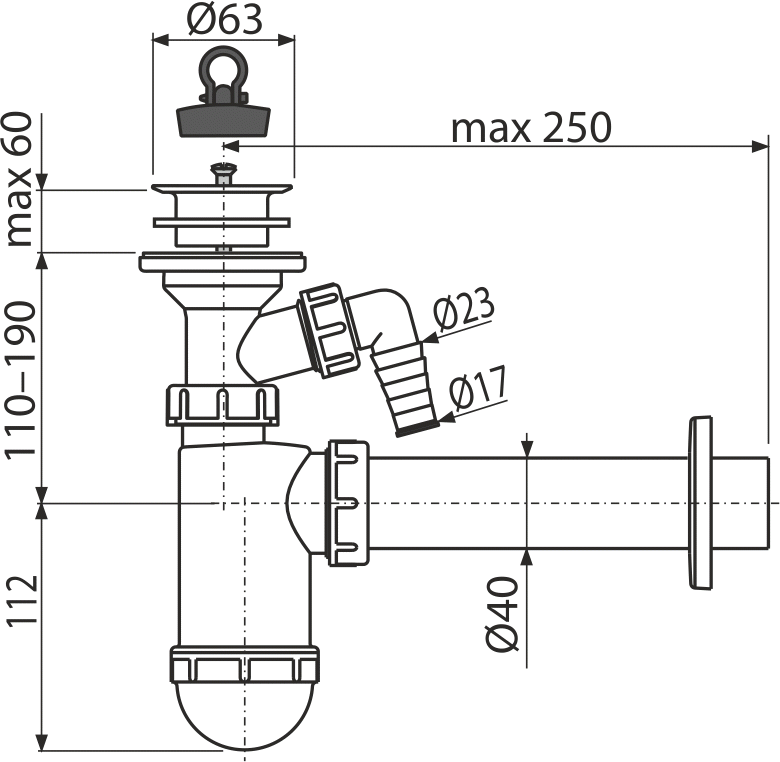 - Подключение к канализационной трубе Ø40 мм