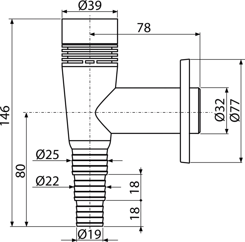 • Подключение к стоковой трубе Ø32 мм
