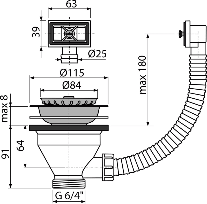 - Резьбовое соединение 6/4" для подключения к сифону для мойки