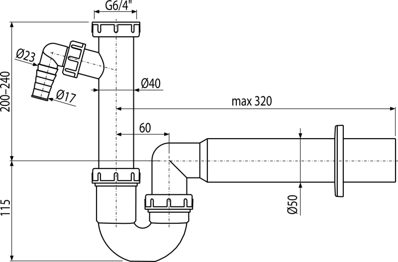- Резьбовое соединение 6/4" для подключения слива мойки или раковины