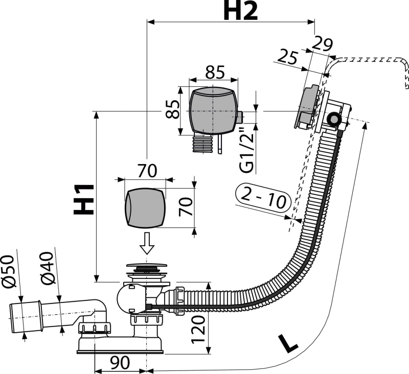 • Длина сифона для ванны 57 см